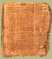 Główną i najbardziej znamienną cechą książki jest zawarta w niej treść. Na przestrzeni wieków poszukiwano takich rozwiązań, by zmieścić odpowiednio dużo tekstu i to w taki sposób, by jego ciągłość została zachowana. Najprostszym rozwiązaniem było sklejanie ze sobą następujących po sobie części. W ten sposób wykształciła się forma zwoju (patrz: zwój) wykonanego z papirusu. Wzrost popularności skóry wiąże się niewątpliwie ze współzawodnictwem między Egiptem i Pergamonem, w których znajdowały się dwie konkurujące ze sobą najwspanialsze biblioteki starożytności. Ptolemeusz w II w.p.n.e. wstrzymał eksport papirusu dla biblioteki pergamońskiej, co miało zahamować jej rozwój. Efekt tych działań był odwrotny, gdyż w Pergamonie zaczęto wytwarzać materiał pisarski ze skóry - pergamin. Udoskonalenie technologii wytwarzania i wzrost produkcji pergaminu wynikały z chęci uniezależnienia się od importu egipskiego, a także dużego zapotrzebowania na materiał piśmienny lokalnego skryptorium. Ograniczony wielkością skóry zwierzęcej pergamin oraz jego grubość i sztywność sprawiały, że gorzej nadawał się do rolowania niż papirus. Ta cecha pergaminu, jak również nieporęczność zwoju były przyczyną poszukiwań innej formy zewnętrznej dla zapisanego tekstu. Zamiast sklejać karty, zaczęto je kłaść jedne na drugich, wzorując się na poliptykach drewnianych tabliczek. Stąd również zapewne nazwa nowej postaci książki - kodeks od słowa coudex (łac.) - kloc drewna. Początkowo nazwa codex była stosowana do dwóch lub więcej połączonych ze sobą tabliczek z drewna wypełnionych (czy pokrytych?)woskiem, na którym rysikiem ryto tekst (il. 2,3). Później termin ten został zastosowany do kodeksów wykonanych z papirusu i coraz częściej z pergaminu. Zamiast sklejać karty i zwijać, wystarczyło je przełamać i złożyć. Kilka lub kilkanaście przełamanych kart włożonych jedne w drugie tworzyło pierwsze kodeksy. Choć dla papirusu charakterystyczną formą pozostawał zwój, to istniał krótki okres przejściowy, w którym powstawały kodeksy papirusowe (il. 4). Przyczyną tego stanu rzeczy było uważanie pergaminu za materiał zbyt pospolity, a także nieświadomość faktu, że papirus nie posiada odpowiednich właściwości fizycznych do stosowania go w formie kodeksu. Okazał się zbyt cienki i łamliwy, aby wykorzystywać go w nowej formie książki. Zaczęto więc powszechnie w kodeksach używać bardziej do nich odpowiedniego pergaminu. Wytwarzano go ze skór, głównie młodych zwierząt (cieląt, jagniąt, koźląt). Były to skóry wyprawiane (bez sierści, oskrobane, wypłukane), ale nie garbowane (czyli były tzw. golizną). Następnie poddawano je wielu procesom, w wyniku których uzyskiwano wyrób miękki, elastyczny, jasny. Ogromną zaletą pergaminu było to, że w przeciwieństwie do papirusu, można go było pokrywać pismem z obu stron (kodeks), a także stosować iluminowane zdobienia (miniatury), ponieważ farby nie rozlewały się na nim tak, jak na papirusie. Kolejny ważnym atutem była też możliwość pozyskania podłoża pisarskiego z miejscowych surowców w niemalże wszystkich krajach.